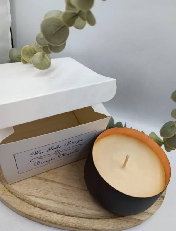 La Bougie Végétale Parfumée Myrrhe au mélange parfumé intensément boisé de Gaïac, Santal et Patchouli, vous transporte dans un univers chaud et épicé. Dans son élégant photophore, la flamme se mêle à un jeu de lumière et scintillements. Cette Bougie Végétale Parfumée parfume et décore votre intérieur en créant une ambiance raffinée et chaleureuse durant de longues heures.