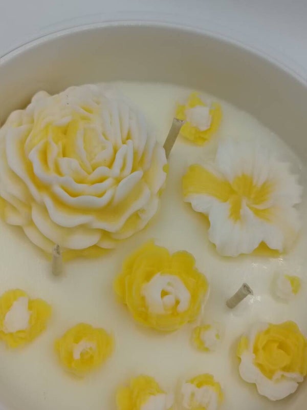 Découvrez cette somptueuse bougie 3 mèches – 240g, une véritable pépite alliant esthétique et bien-être. Chaque bougie est ornée de délicates fleurs en cire et sublimée par des fragrances envoûtantes, créées à Grasse.